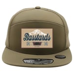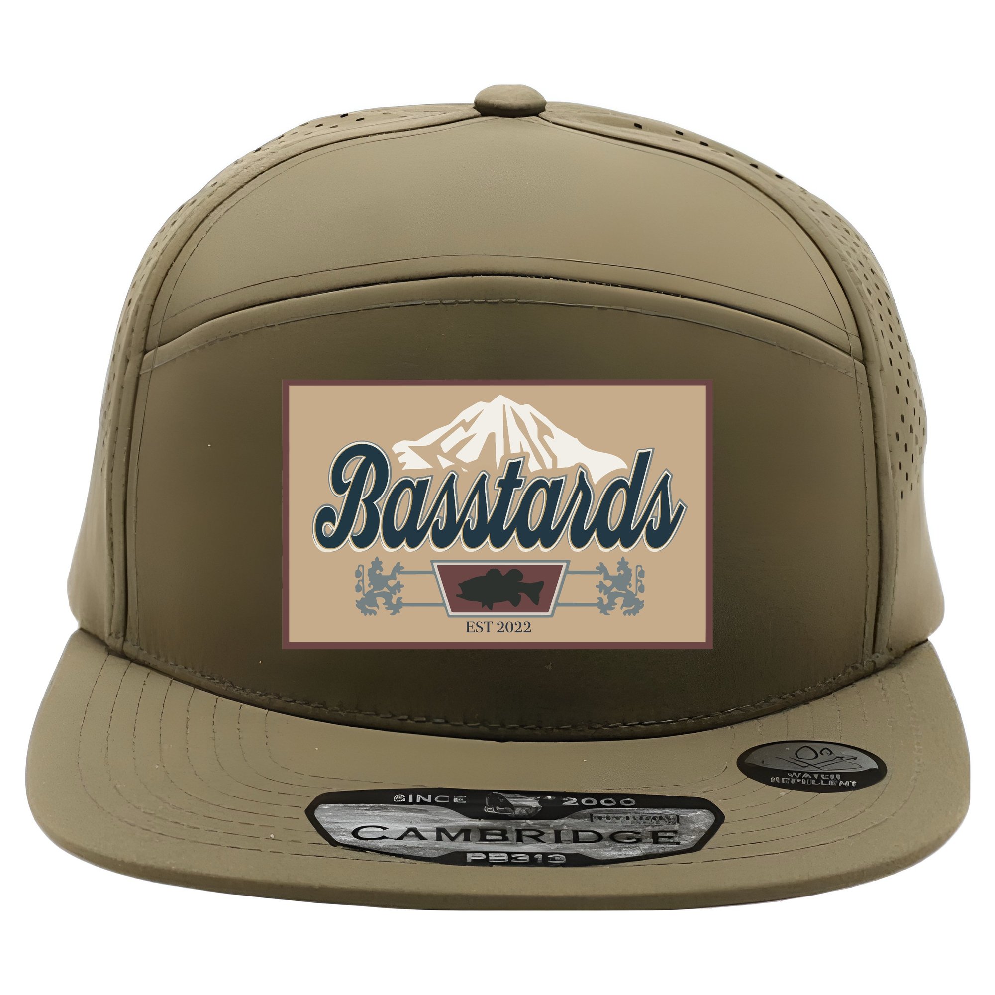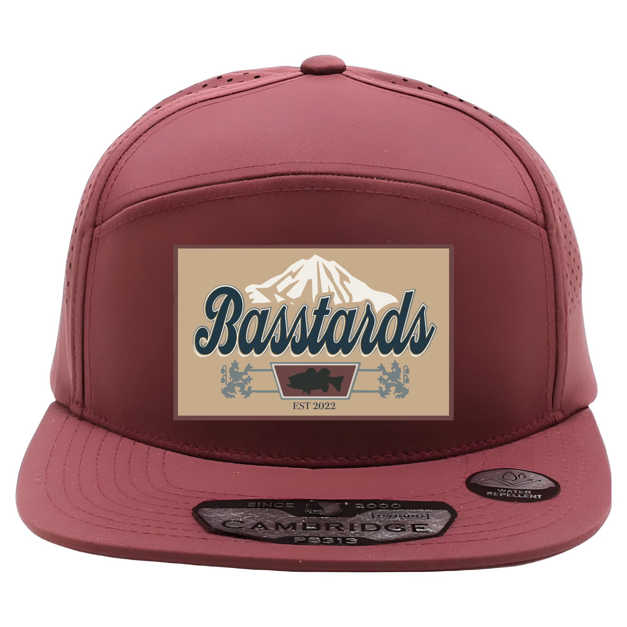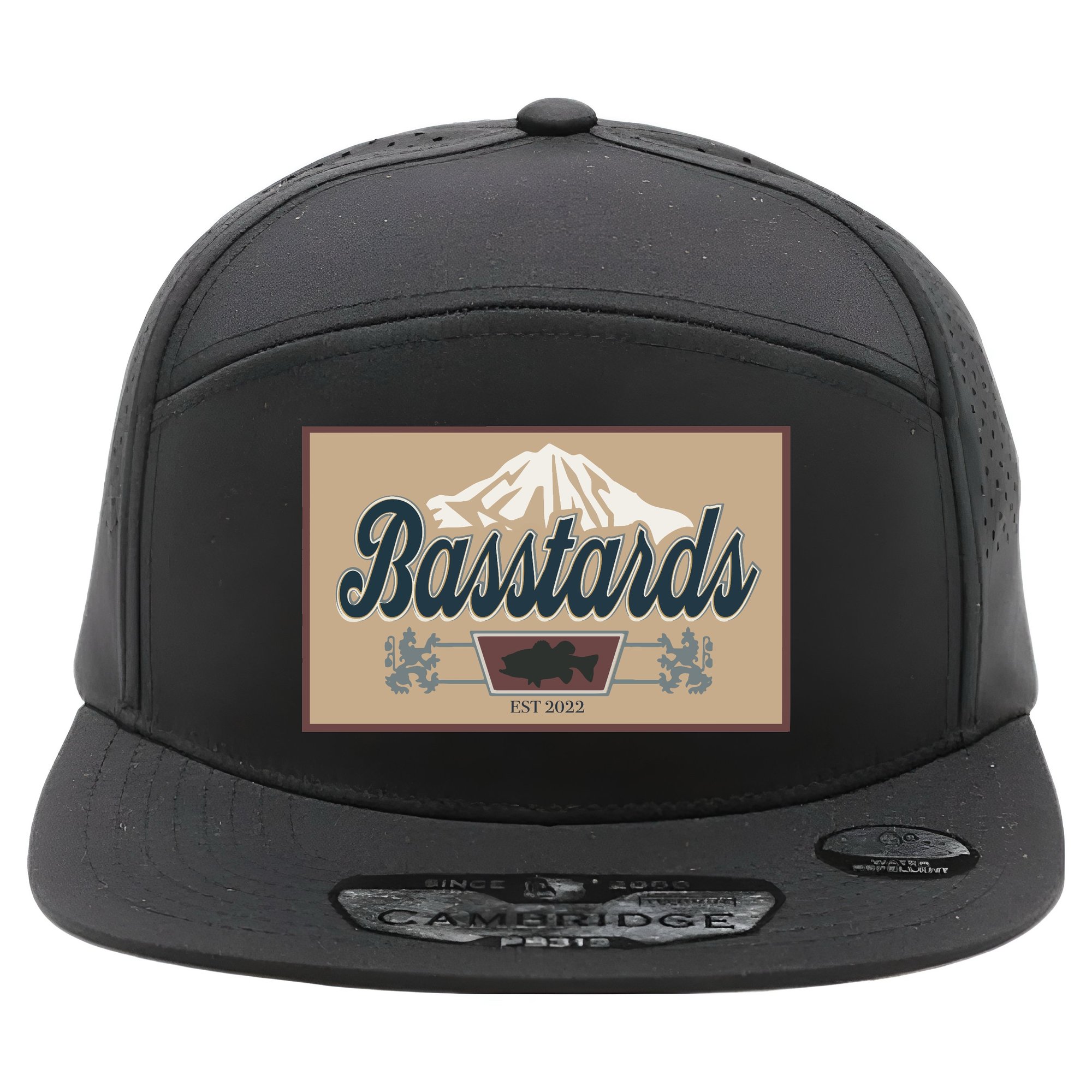 Our banquet design on mesh 7 panel SnapBack hat. This hat is fully embroidered. No patch! With the BASSTARDS in 3D puff embroidery and SB hit on left ear.